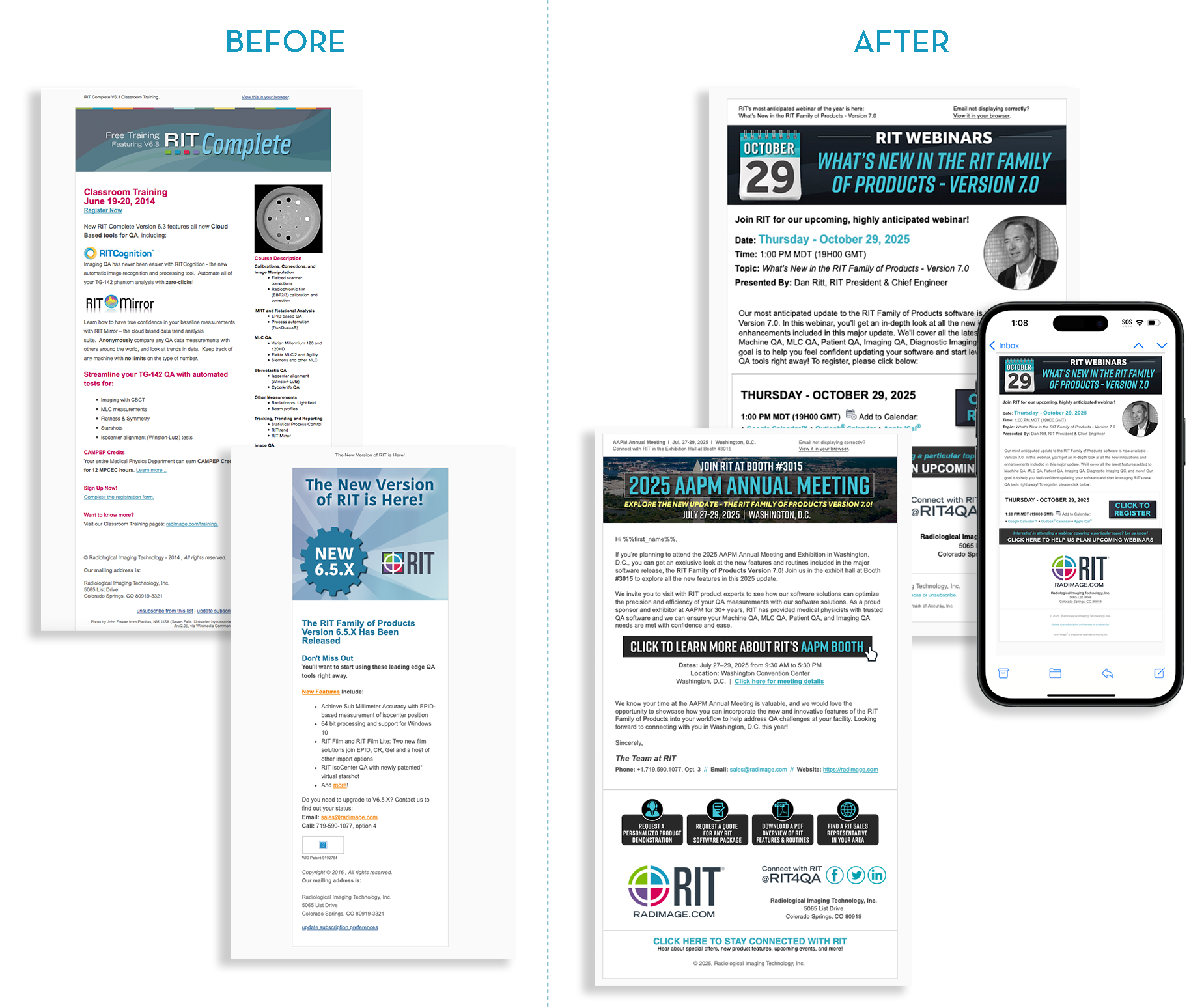 Integrated, consistent creative content has the power to completely overhaul a brand’s identity. For nearly a decade, I've served as the in-house Creative Director for an international leader in Radiation Oncology software, a field where precision is paramount. My work supports medical physicists in the critical quality assurance of radiation therapy and diagnostic devices. The case study below documents the strategic evolution of the company under my creative leadership. In addition to delivering a fresh aesthetic, this transformation produced measurable growth in engagement, brand awareness, lead generation, and most importantly, sales. Explore more details by clicking each thumbnail.